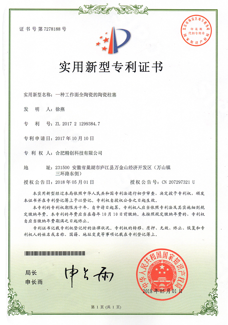 (2018實用新型)一種輕質(zhì)陶瓷柱塞